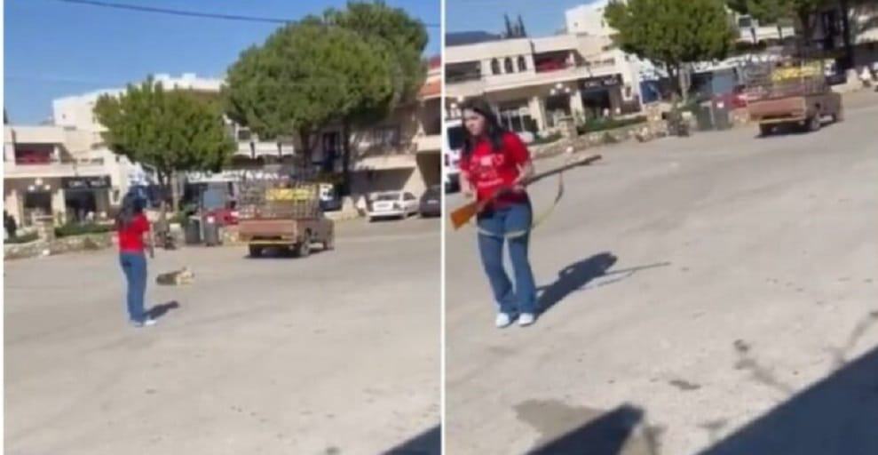 ويظهر بالفيديو المتداول، سيدة تقترب من كلب كان يجلس بالشارع في أمان، وتمسك بيدها سلاحاً نارياً، وتطلق النار عليه أكثر من مرة من مسافة صفر.
