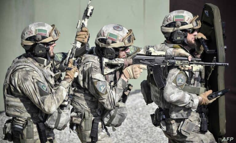وطن – تداول ناشطون عبر مواقع التواصل الاجتماعي، مقطع فيديو لجنود موالين للرئيس الشيشاني رمضان قاديروف أثناء تمشيط مدينة ماريوبول الأوكرانية، وهم يرددون شعارات استخدمها الزعيم الليبي الراحل معمر القذافي، بعد الثورة الشعبية التي اندلعت ضده في 15 فبراير/شباط 2011.