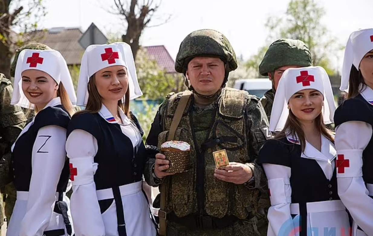 وتظهر الصور التي تم عرضها وهن يجلبن كعكات إلى القوات الروسية بمناسبة عيد الفصح الأرثوذكسي.