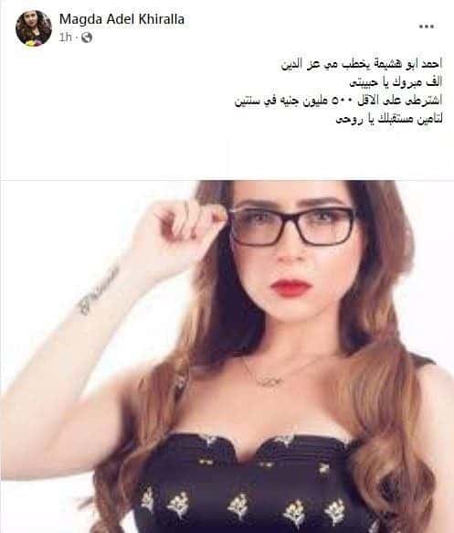 وكتبت “خير الله” على حسابها الرسمي “:أحمد أبو هشيمة يخطب مي عز الدين ألف مبروك يا حبيبتى. اشترطى على الأقل 500 مليون جنيه في سنتين، لتأمين مستقبلك يا روحى”.