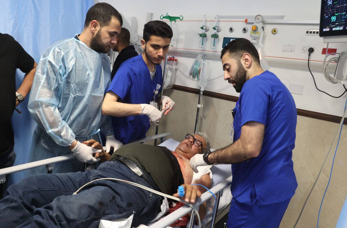 الصحفي علي سمودي يتلقى العلاج بعد إصابته برصاص الاحتلال خلال تغطية اقتحام جنين