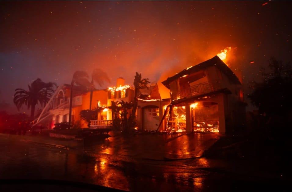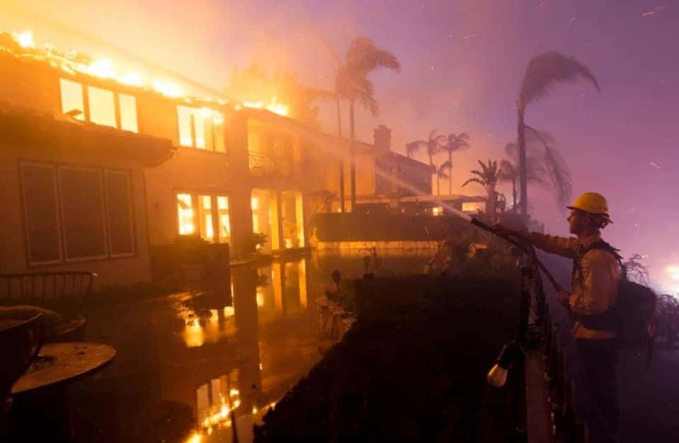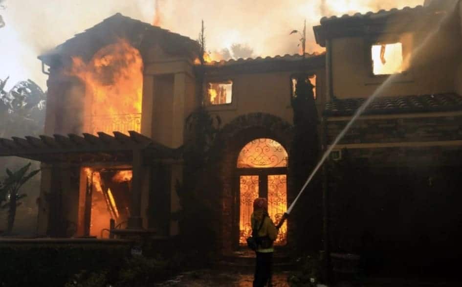 وبسبب الحرائق التي اشتعلت، فَقد قصر تبلغ قيمته 6.6 مليون دولار – يحتوي على أربع غرف نوم وسبع حمامات – سقفه بالكامل وقد كان رجال الإطفاء يكافحون من أجل المحافظة على تماسك جدران هذا السقف فضلا عن الممتلكات المجاورة.