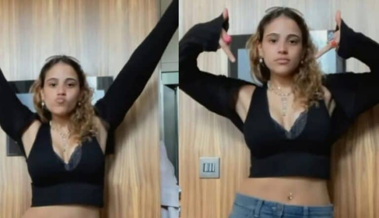 ونشرت جنا دياب فيديو عبر حسابها على “انستجرام”، وهي ترتدي تنورة جينز قصيرة، مع توب كروب باللون الأسود، يكشف بطنها كاملاً وجزءاً كبيراً من صدرها.