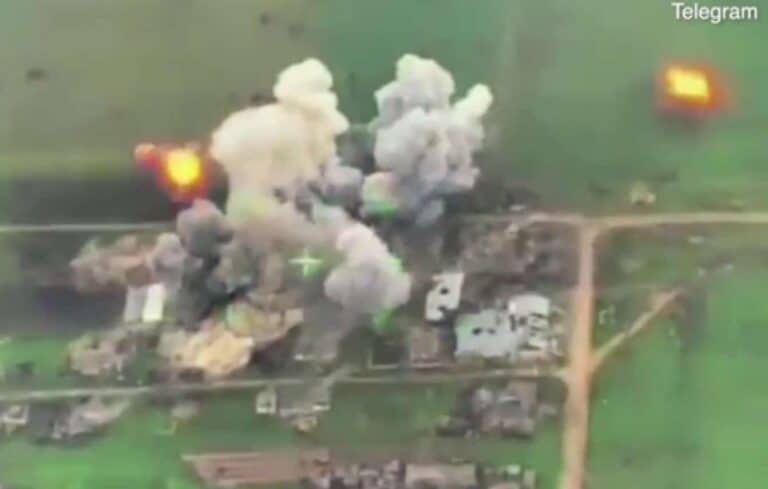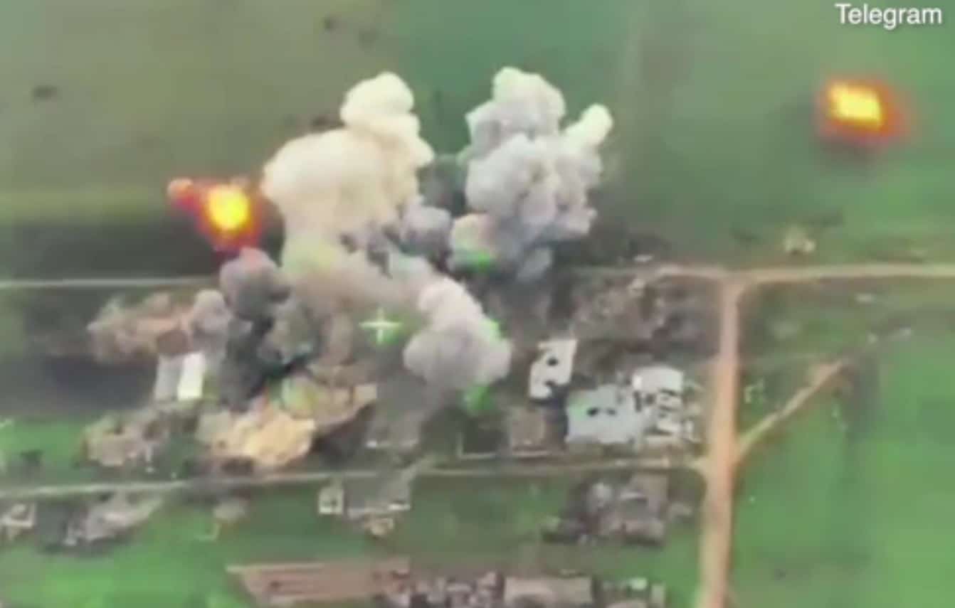 ويبدو أنّ الهجوم الذي ظهر في اللقطات يبدو أنه نفذ بطائرة مسيرة روسية.