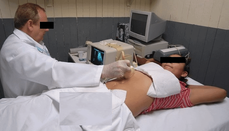 ودخل على الفتاة المريضة شخص وطلب منها خلع ملابسها العلوية. ثم قام بوضع كريمات وتحسس منطقة صدرها، وبعد عمل الإشاعة أخبرها بحملها.