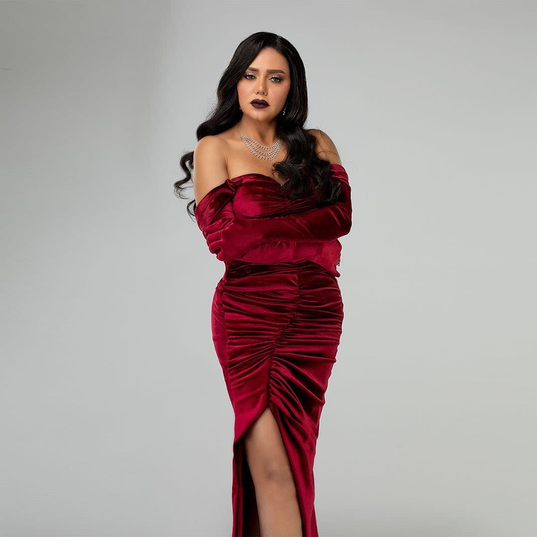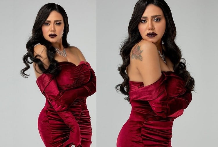 وظهرت رانيا يوسف بالفيديو الذي نشرته عبر “انستجرام”، وهي ترتدي فستاناً أحمر قطيفة بأكمام، ولكنه عاري الصدر بلا حمالات.