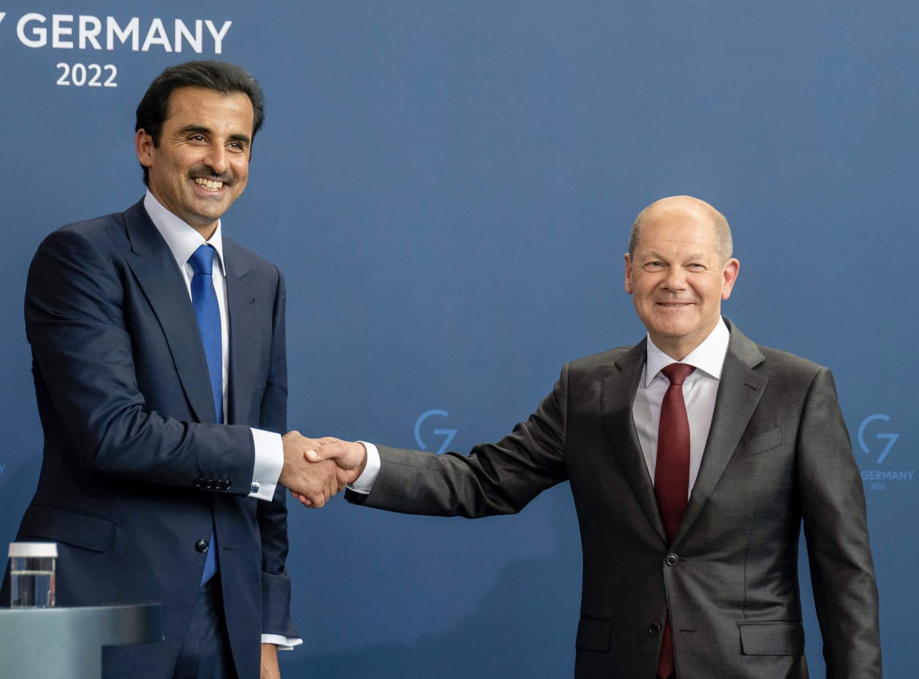 وقال أمير قطر في مؤتمر صحافي مشترك مع المستشار الألماني أولاف شولتز، في العاصمة برلين، الجمعة، إن ملف استضافة بلاده كأس العالم لكرة القدم 2022، من المنتظر أن تكون النسخة الأبرز في التاريخ، بفضل التحضيرات والتجهيزات التي بذلت لهذا الحدث.