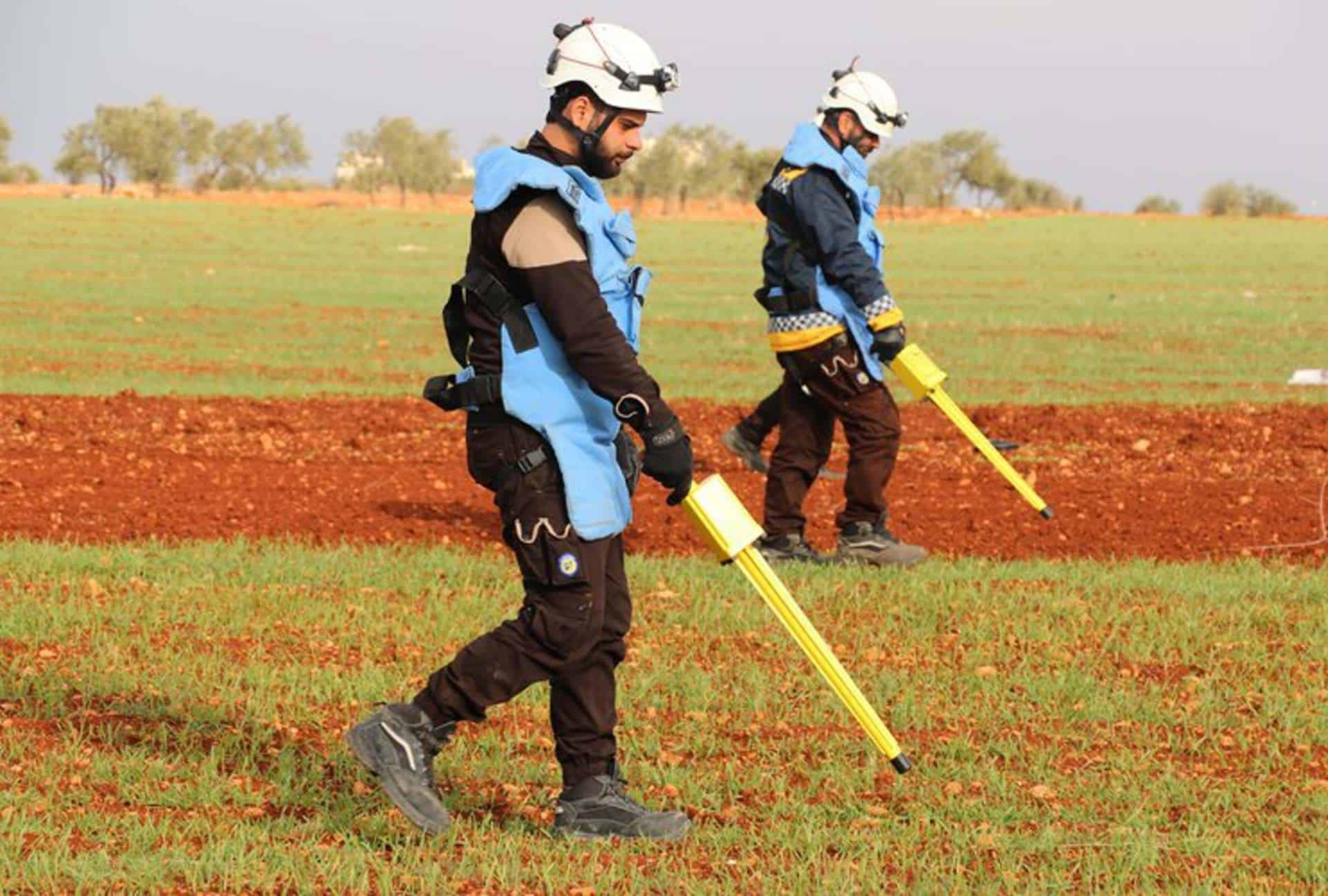 متطوعو الخوذ البيضاء يفتشون الأراضي الزراعية السورية بحثًا عن ذخائر غير منفجرة (الدفاع المدني السوري
