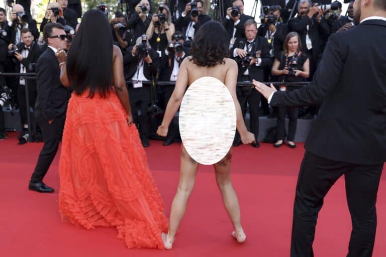 ونظمت المرأة العارية احتجاجها خلال العرض الأول لفيلم جورج ميلر “ثلاثة آلاف عام من الشوق” في اليوم الرابع من مهرجان كان السينمائي.