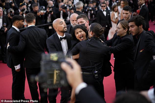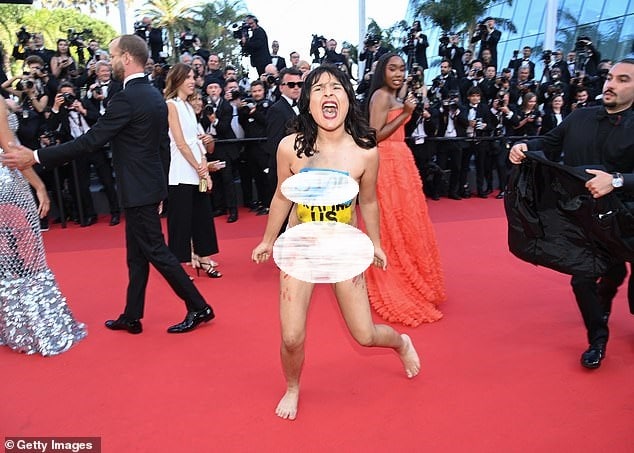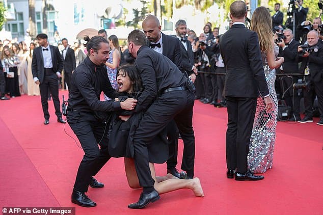 وحاصرها حراس الأمن بسرعة وأبعدوها عن السجادة الحمراء، بينما كانت تصرخ “لا تغتصبنا” بحسب ما ذكرت صحيفة “ديلي ميل” البريطانية.