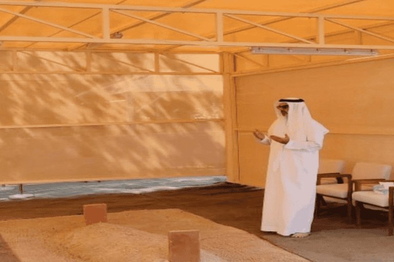 مغرد آخر كتب مدافعا وموضحا أن “هذه المظلة لزوار المقبرة، لأن الجو في هذه الأيام حار.”