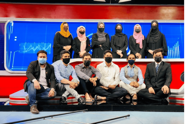 وظهرت جميع المذيعات في قنوات “تولو نيوز” و”شامشاد تي في” و”وان تي في” و”أريانا”، بغطاء الوجه أثناء تقديم فقراتهن.