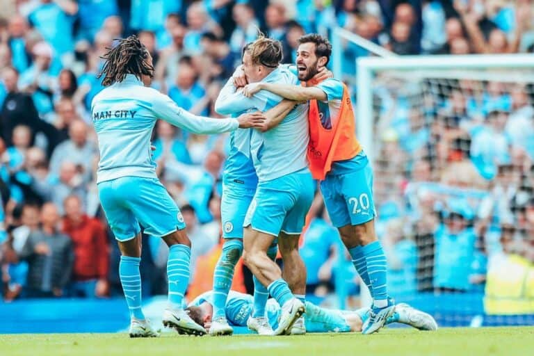 وطن – في سيناريو درامي عاشه عشاق كرة القدم الإنجليزية، نجح مانشستر سيتي بالتتويج بلقب الدوري الإنجليزي للمرة الثانية على التوالي، بعد فوزه على أستون فيلا بثلاثية ثمينة مقابل هدفين، في المباراة الختامية التي جمعت الفريقين على ملعب ” إستاد الاتحاد”.