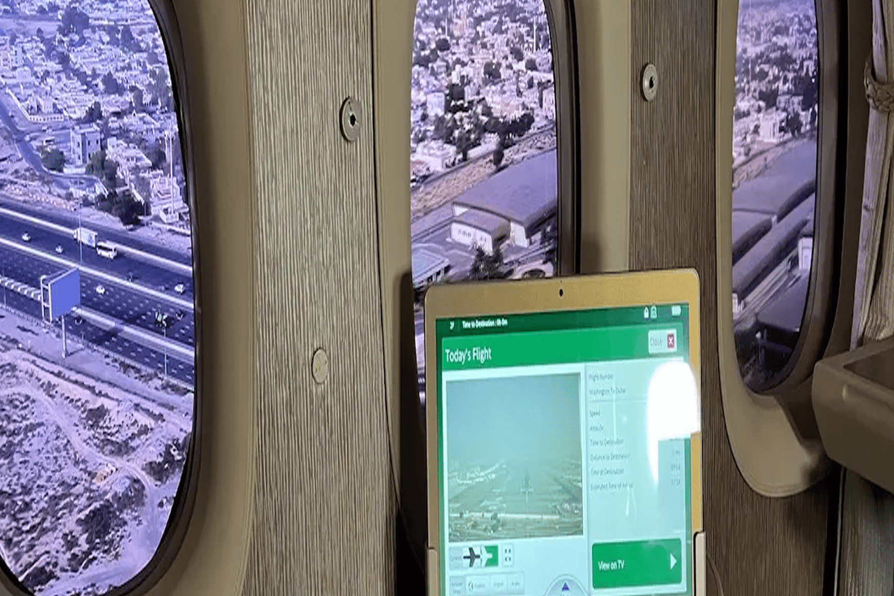 تقدم خطوط طيران الإمارات خدمات متعددة لتوفير راحة أكبر ورحلات أكثر سلاسة لعملائها. وفي الدرجة الأولى، تمنح طائرة بوينج 777 الجديدة الركاب خيار طلب خدمة الغرف عبر أجهزتهم اللوحية. فلا يمكنك بهذه الطريقة الاتصال بالطاقم الموجود في المطبخ فقط، ولكن يمكنك أيضًا الاتصال به عبر الفيديو.