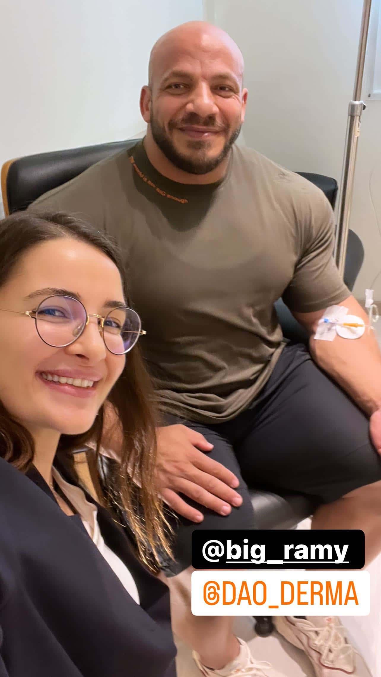 كما نشر رامي فيديوهات عبر خاصية الستوري على انستجرام، ظهر فيها وهو يضع محلولاً في يده، ويوضح خضوعه لتقنية جديدة في عيادة شام، لم تكن موجودة في مصر