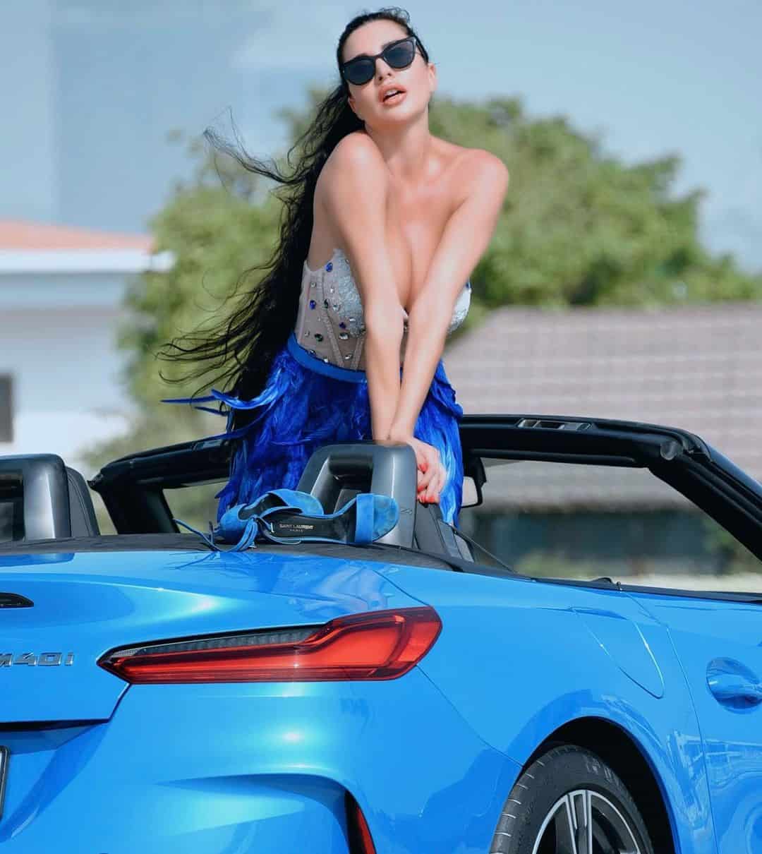 وعلى طريقة مواطنتها هيفاء وهبي، خضعت لاميتا لجلسة تصوير بجانب سيارة BMW فارهة.