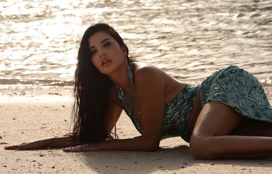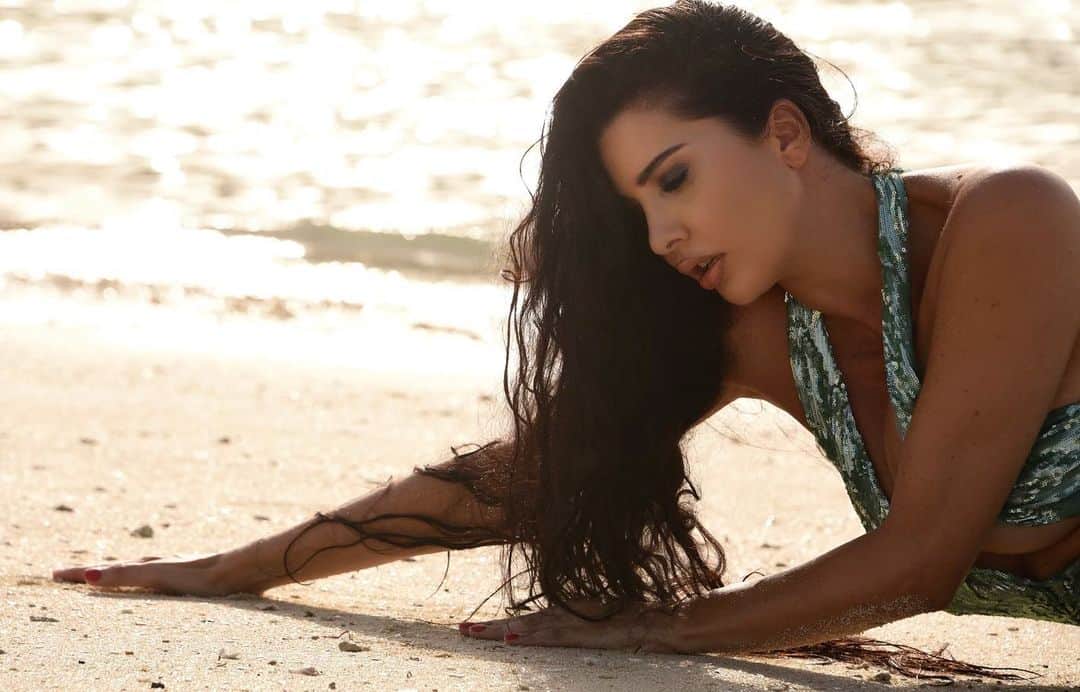 وبدت لاميتا بالصور وهي مستلقية على الشاطئ بطريقة مغرية، وبدت بإحدى الصور وكأنها نائمة.