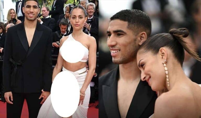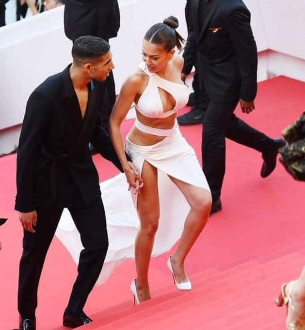 وظهر أشرف حكيمي في مهرجان كان برفقة زوجته بفستانها الذي وصفه المتابعون بالفاضح.