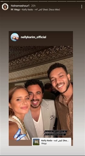 كما ظهرت نيللي كريم في صورة تجمعها بزوجها لاعب الاسكواش السابق هشام عاشور بصحبة مغني الراب ويجز، مع  أغنية “كيفي كدة” في الخلفية.