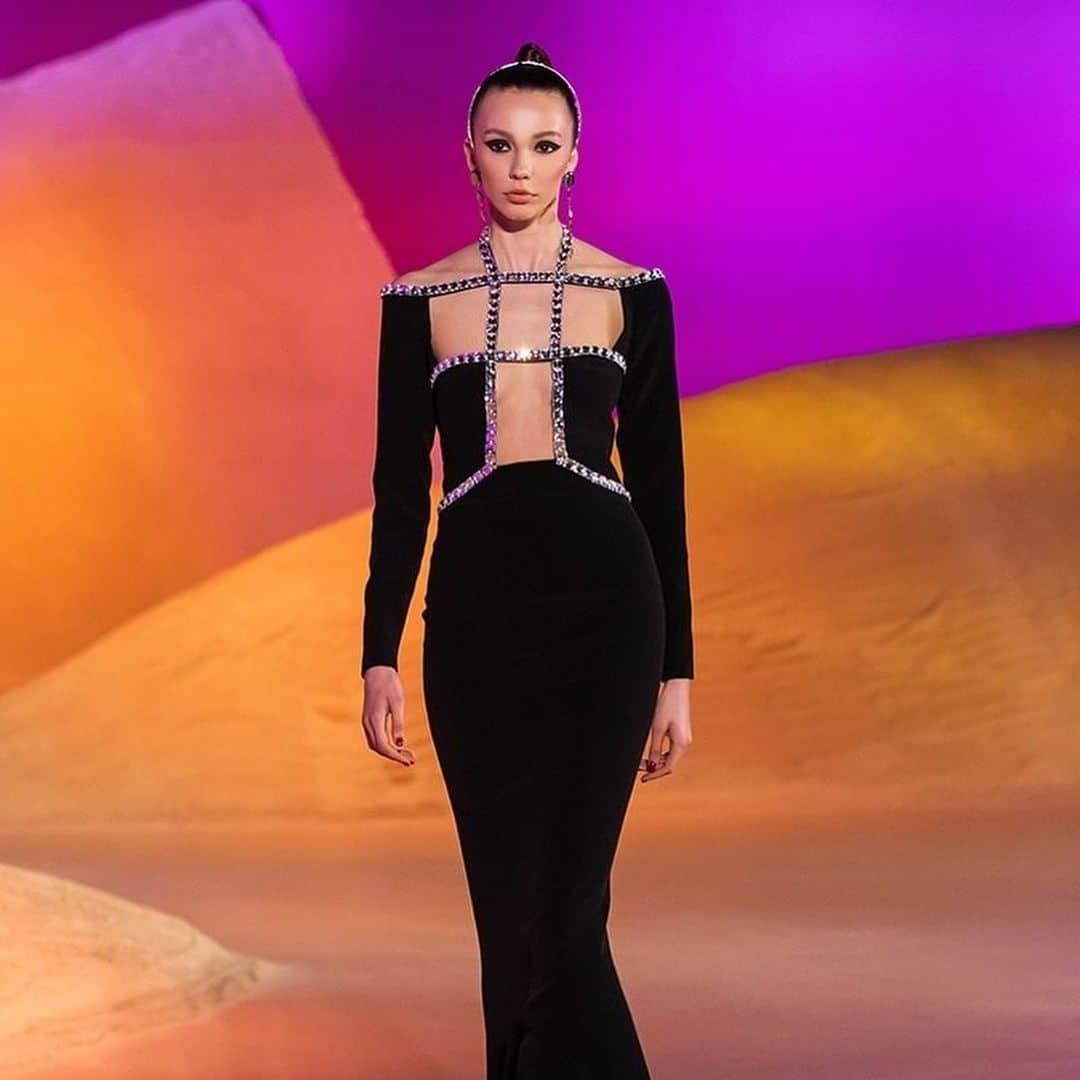 وفستان منى زكي من تصميم اللبناني جورج حبيقة، وبالعودة إلى الفستان الأصلي يتبين أنه النجمة المصرية قامت بالتعديل عليه لتغطية المزيد من منطقة الصدر. فزادت قطعة سوداء من نفس الخامة.