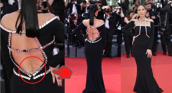 وظهرت منى زكي في إحدى فعاليات مهرجان كان بفستان أسود طويل، يتميز بوجود عدة فتحات في منطقة الصدر والظهر.