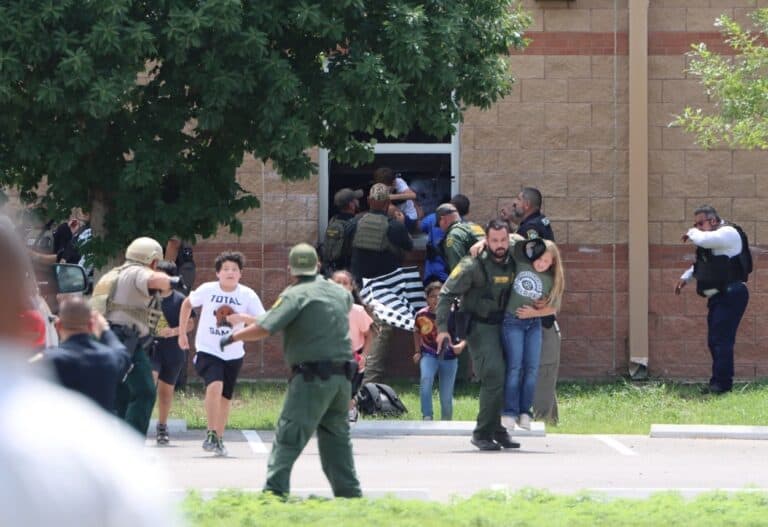 تبين الصور التي نشرها موقع “نيويورك بوست“، لحظات درامية من مذبحة مدرسة أوفالدي بولاية تكساس، فيما رجال الشرطة يسحبون الأطفال المذعورين من نوافذ المبنى بينما كان المسلح لا يزال في الداخل.