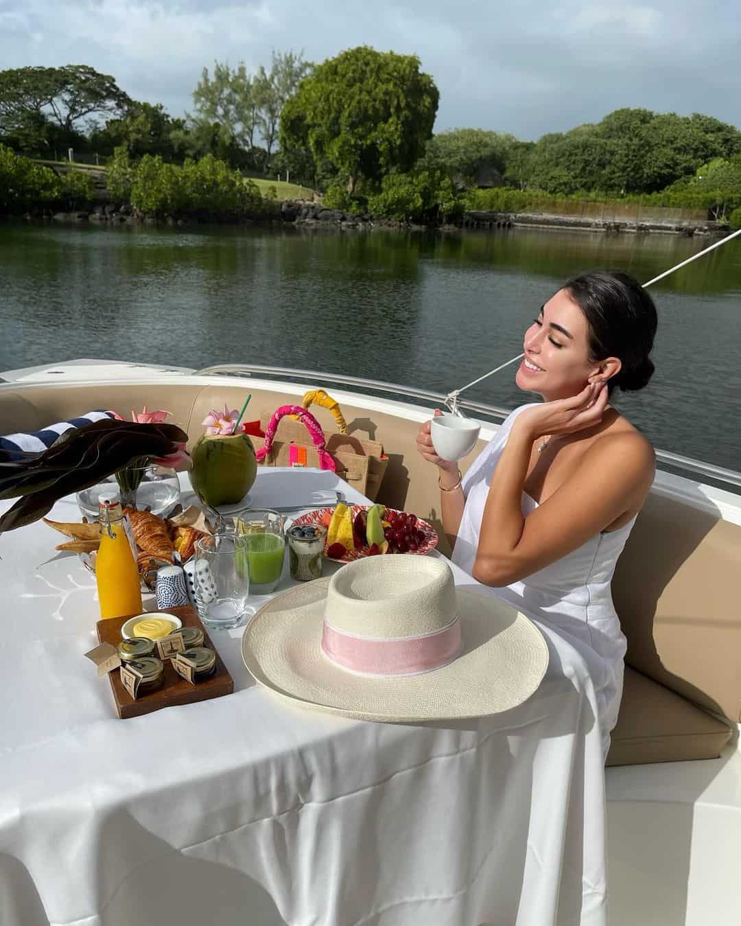 وظهرت ياسمين صبري في الصور التي نشرتها عبر “انستجرام”، وهي تتناول وجبة الإفطار في منتصف المحيط الهندي في جزر موريشيوس الملقبة بـ”الجنة المخفية”.