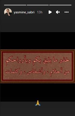 وعبر خاصية الستوري، نشرت ياسمين صورة كتب عليها: “خذوا ما يليق بكم وبأرواحكم من أحلام، وأشخاص، وكلمات”.