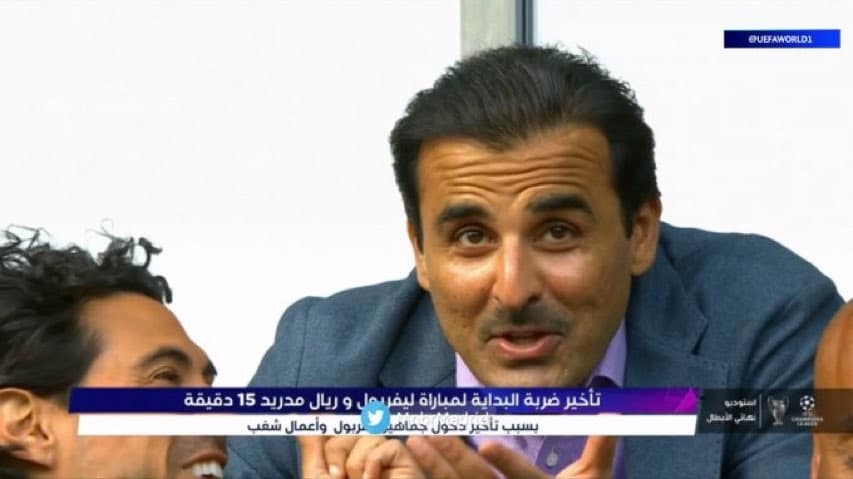 ويبدو أن تواجد أمير قطر الشيخ تميم بن حمد آل ثاني، في جولة خارجية قد سمح له بحضور نهائي دوري الأبطال في فرنسا.