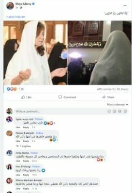 وكتبت على صفحتها الشخصية على فيسبوك: قلوبنا ودعواتنا وصلواتنا معك ولتكن مشيئة الله ربنا يسندك ويقويكي لا يمانك ولصبرك ولا يرد القدر غير الدعاء”.