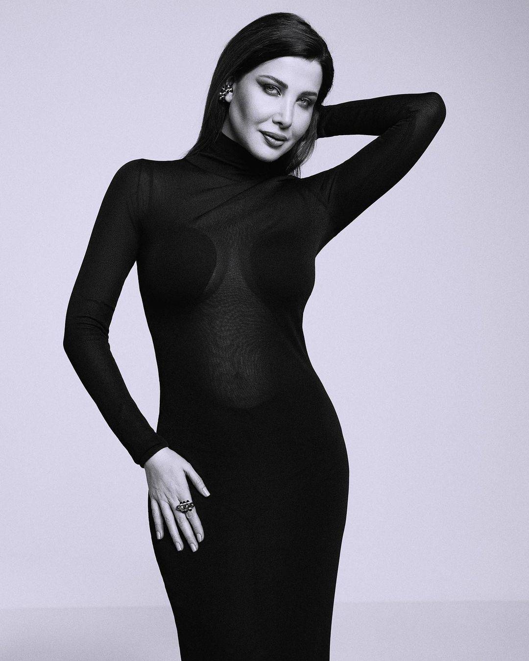 وظهرت نانسي عجرم في الصور التي نشرتها عبر “انستجرام”، وهي ترتدي فستاناً أسود اللون، شفافاً تماماً، فيما عدا منطقة الصدر.