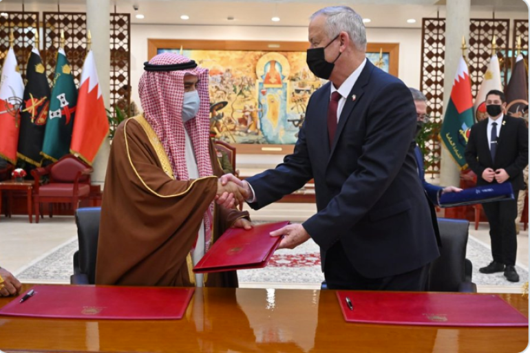 كما وقَّع الشريكان الجديدان، خلال زيارة وزير الدفاع الإسرائيلي بيني غانتس للمنامة قبل أيام من زيارة بينيت، اتفاقية دفاعية شملت الاستخبارات والمشتريات والتدريب المشترك. واتفق الطرفان على تعيين ضابط إسرائيلي في المملكة في “إطار تحالف دولي يهدف إلى تأمين حرية الملاحة في المياه الإقليمية للمنطقة”، لتصبح المنامة أول دولة عربية تُشغِّل ضابطا إسرائيليا رسميا.