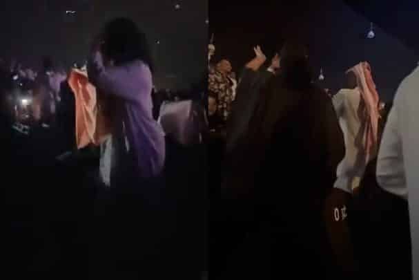 وتكشف بعض المشاهد عن منقبات وسط الحضور من الجمهور، يرقصن “بخلاعة” مع الشبان، على أنغام أغاني موضي الشمراني.