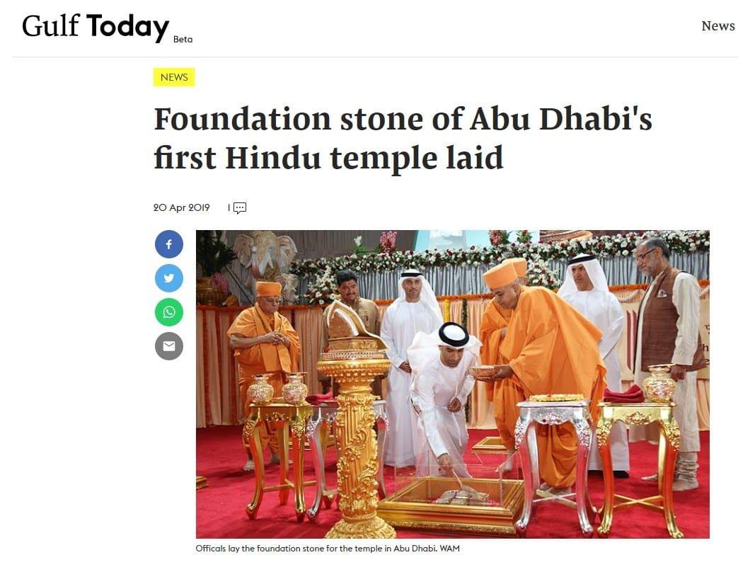 الصورة التي انتشرت على نطاق واسع وتسببت في هجوم عنيف على الرئيس الإماراتي، بالتزامن مع إساءات الهندوس للإسلام والرسول، تظهره وسط عدد من الرهبان الهندوس والمسؤولين الإماراتيين وهو يضع حجر الأساس لأول معبد هندوسي بالبلاد.