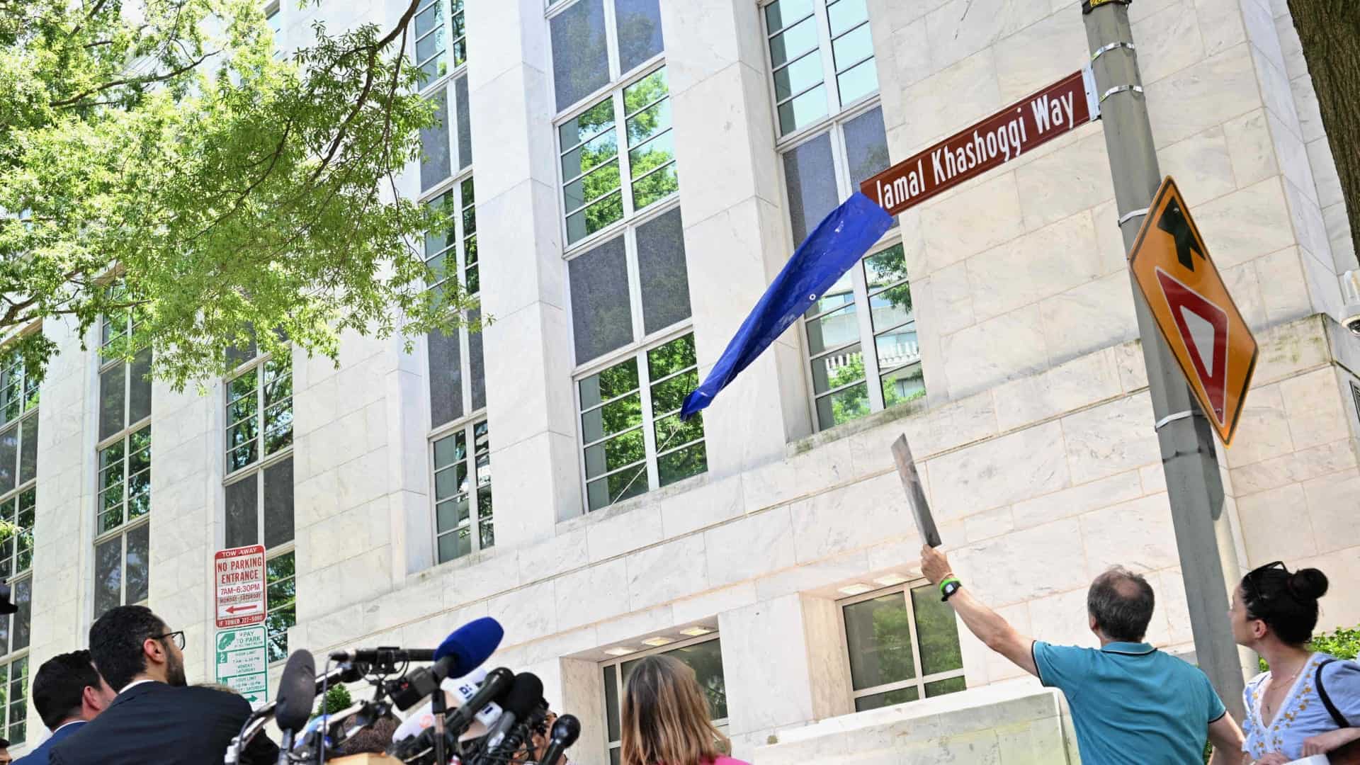 وأعلنت مؤسسة “DAWN” التي أسسها الصحفي السعودي الراحل، جمال خاشقجي، عام 2018، عن إطلاق اسمه على الشارع الذي يحد السفارة السعودية في واشنطن، بحضور عدد من الشخصيات السياسية الأمريكية والمقربين من خاشقجي، والذين وجهوا رسائل مباشرة وغير مباشرة للرئيس الأمريكي جو بايدن قبل زيارته إلى السعودية في يوليو/تموز المقبل.