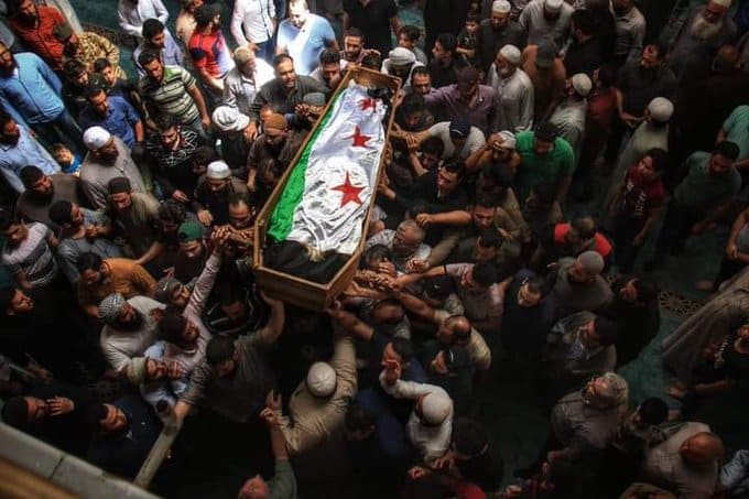 وتداول ناشطون صورا لتشييع جثمان عامر ألفين “أبو عبيدة”، وهو أحد وجهاء محافظة حمص وعضو لجنة حمص بمدينة الباب.
