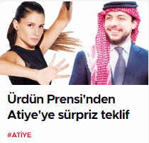 وبحسب تقرير نشرته الصحيفة للكاتب، اسماعيل بيرق، تحت عنوان: “عرض مفاجئ من أمير الأردن لـ آتيا”، فقد زعم الكاتب أن “الأمير الأردني حسين بن عبد الله عرض على المغنية التركية آتيا مبلغ 100 ألف دولار لتصعد على خشبة المسرح في عيد ميلاده وتغني باللغة العربية ووتقوم بالعزف على الدربوكة”.