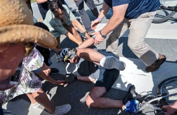 تم تصوير بايدن جالسًا على الرصيف بعد الحادث، محاصرًا في إطار الدراجة.
