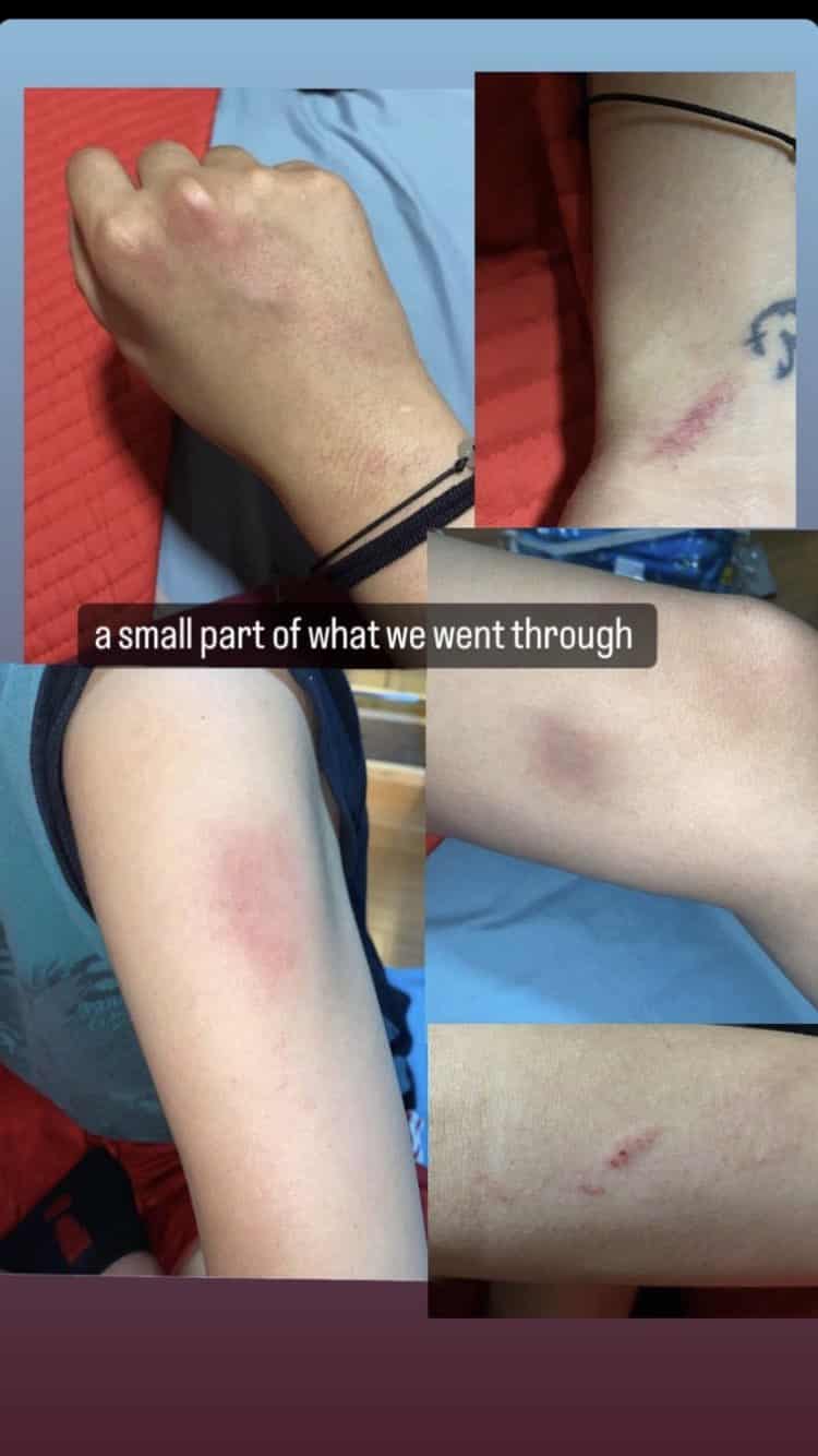 أما في الصورة الثانية، تظهر الكدمات واضحة على أيدي الفتيات كما يقول ناشر الصورة، وكُتب عليها: “جزء صغير مما مررنا به”.