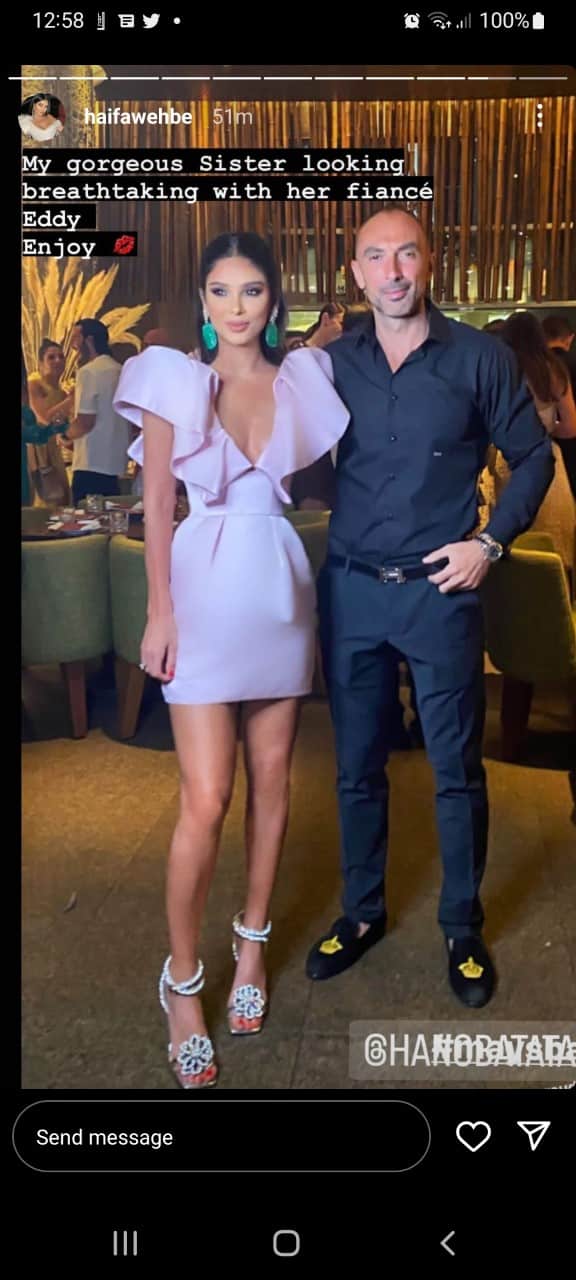 وعلقت هيفاء على الصورة بالقول:” شقيقتي الرائعة تخطف الأنفاس مع خطيبها إدي. استمتعوا”.