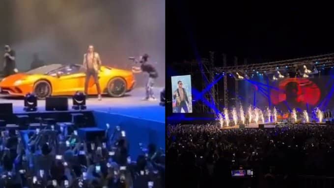 وتداول نشطاء أردنيون يوثق لحظة دخول رمضان المسرح بسيارة لامبورجيني. في الحفل الذي تجاوزت أسعار تذاكره الـ 200 دينار للشخص الواحد.