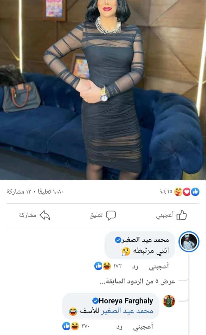 وجاء إعلان حورية رداً على سؤال أحد المتابعين عبر حسابها على فيسبوك بشأن ارتباطها. وكتبت الفنانة: “أنا مع الأسف مرتبطة”.