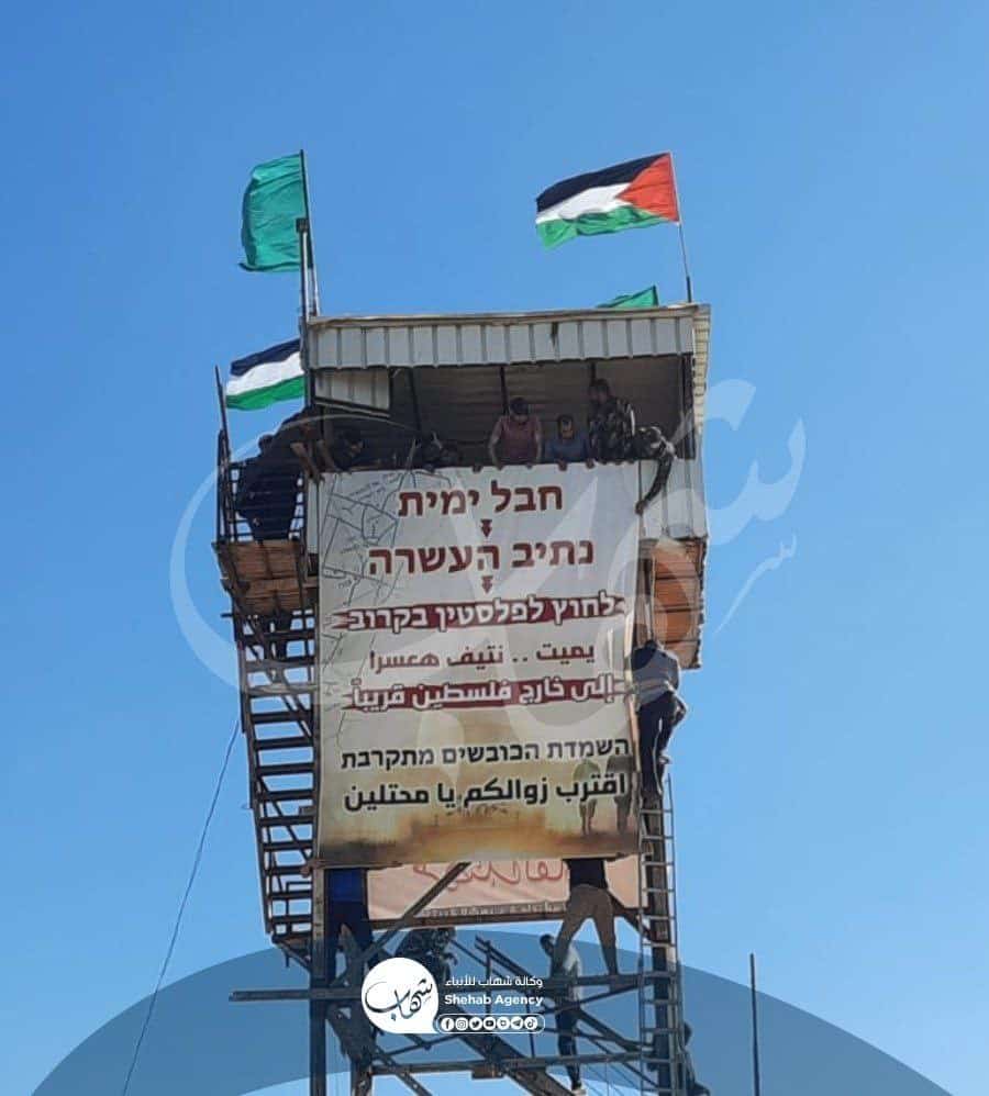 وإمعانا في التحدي، علّق عناصر “كتائب القسام” لوحة جلدية على المرصد كتب عليها بالعربية والعبرية: “يميت.. نتيف هعتسرا.. إلى خارج فلسطين قريباً.. اقترب زوالكم يا محتلون”.