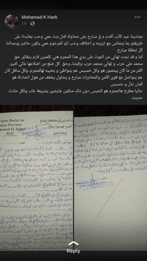 وكتبت أخرى: “كرمال تهاني. وكل اللي عم يتعرضو للعنف متلها. وساكتين خوفًا من المجتمع المتخلّف اللي عايشين فيه. تهاني اللي صبرت وضحت كرمال ولادها المجرم لازم يتحاسب بأبشع العقوبات اللي بتليق ببشاعة فعلتو”.