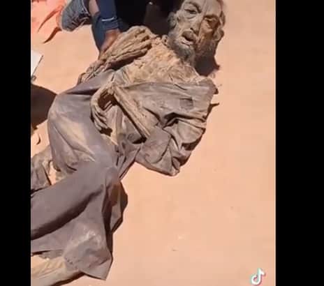 ووفقا للفيديو المنشور فقد ظهرت جثة شبه متحلّلة وسط الرمال، وجاء في التعليق المرافق “أنباء عن العثور على جثة معمر القذافي في الصحراء الليبية قرب جفرة في سرت”.