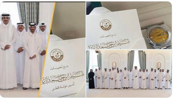 ووفقا للصور المتداولة التي رصدتها “وطن” فقد قدم أمير قطر للمتفوقين في الثانوية العامة ساعة من ماركة “روليكس”، مرفقا بها رسالة كتب فيها “مع تحيات تميم بن حمد آل ثاني أمير دولة قطر”.
