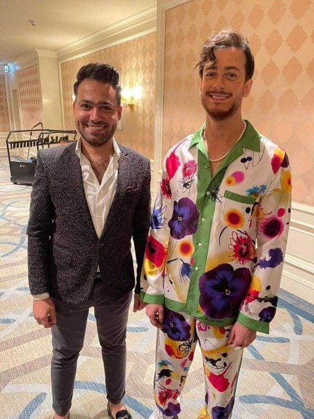 وانتشرت فيديوهات وصور لسعد لمجرد، وهو يرقص ويغني بالحفل، مرتدياً قميص وبنطال ملونين بنفس النقشة.