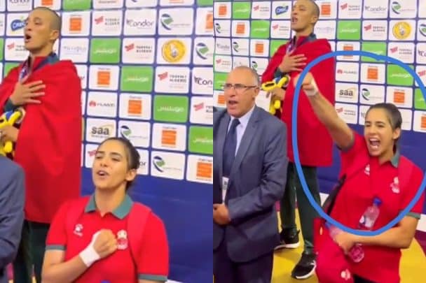 ووفقا لما تم تداوله، فإنه وأثناء التتويج اصطف بعض أعضاء البعثة المغربية الرسمية وإحدى المشاركات في الدورة وأخذوا يرددون النشيد الوطني المغربي مع الموسيقى المعزوفة.