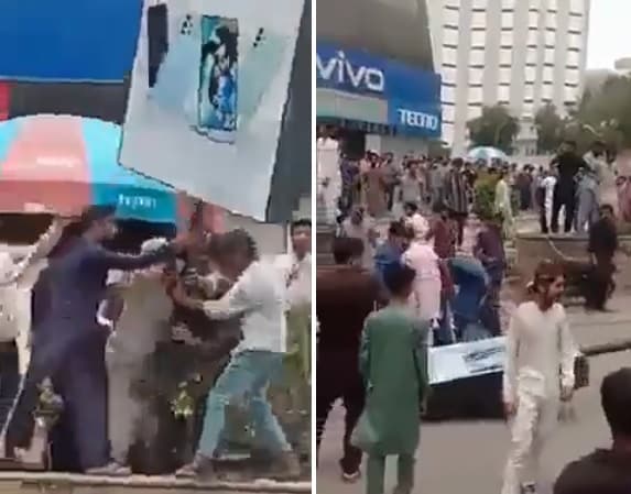 وبحسب الفيديو المتداول الذي رصدته “وطن“، فقد هاجم المحتجون أحد المراكز التجارية وقاموا بتحطيم جميع اللوحات الإعلانية الخاصة بشركة سامسونج في الشوارع بسبب أحد موظفي سامسونج عمل كود لشبكة Wi fi أسمها مسيء للرسول عليه الصلاة والسلام.