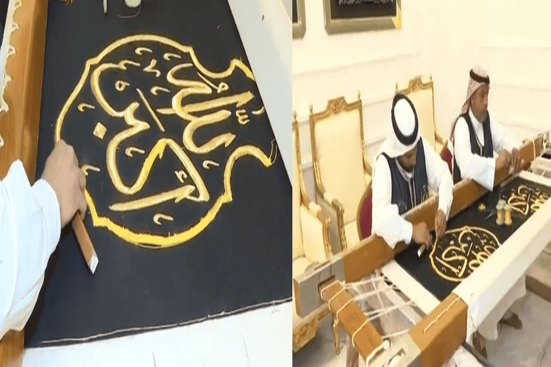 والتقى معد التقرير عدداً من الحرفيين الذين بدوا وهم منهمكون في حياكة جزء من قماش الكعبة.